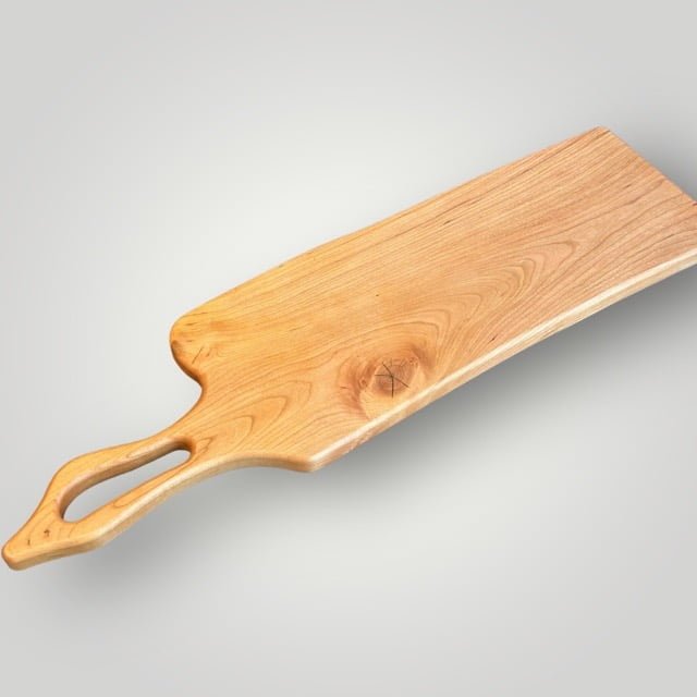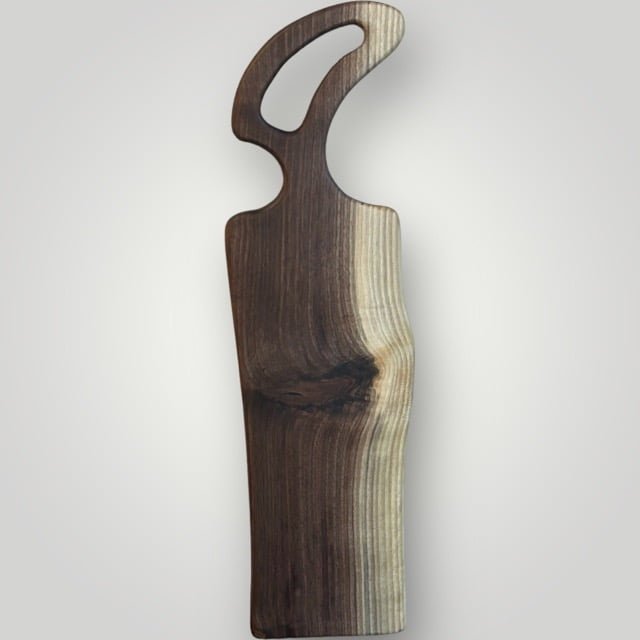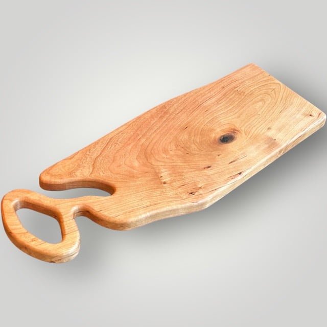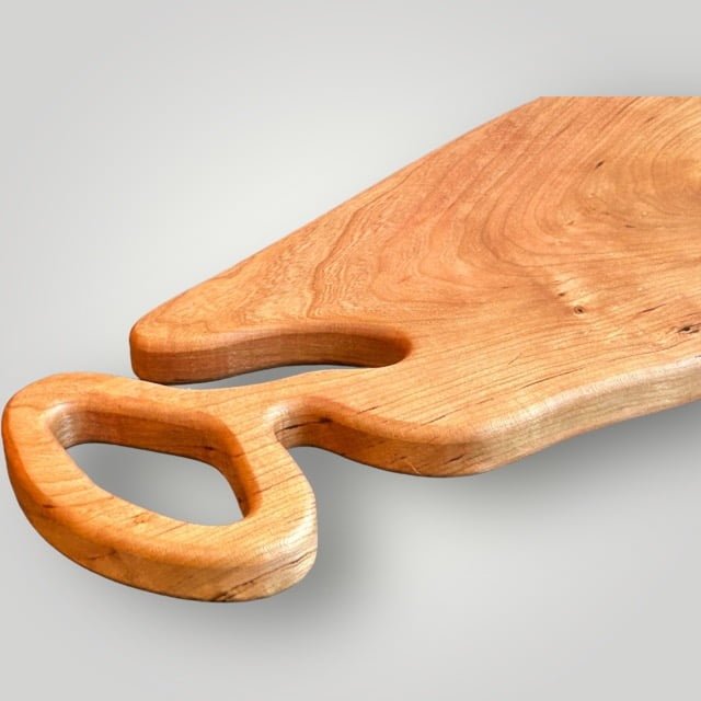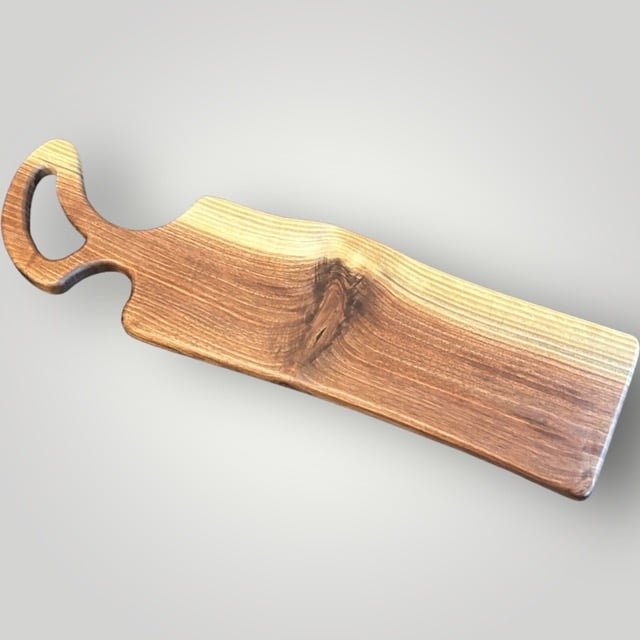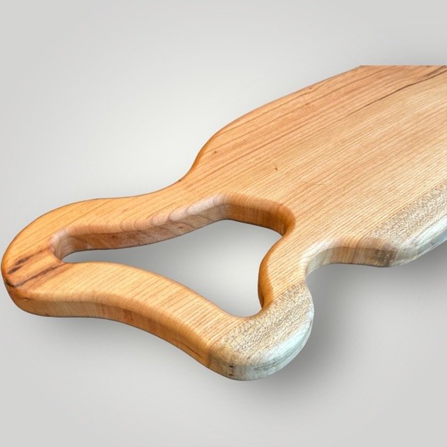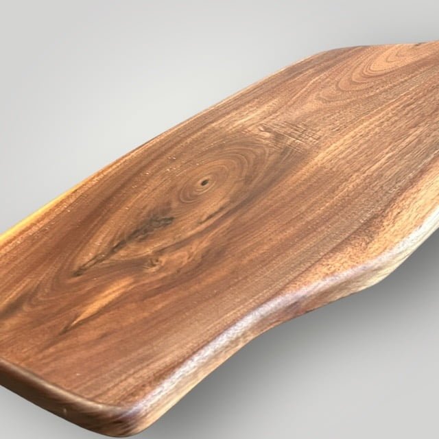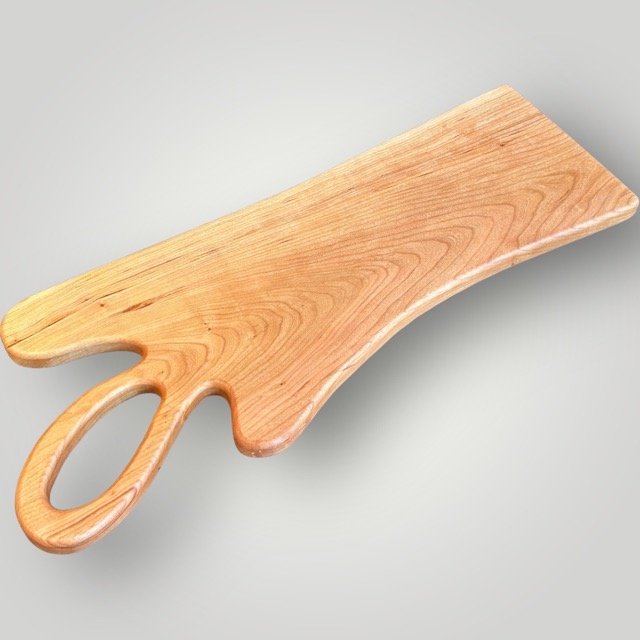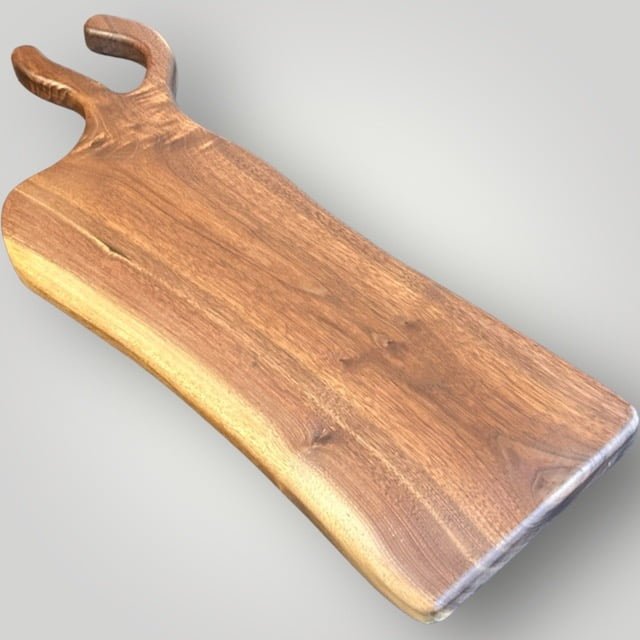 The "Artisan" Series Charcuterie Board Series is unique to The Creative Den and adds to the Philosophy of doing something different than anyone else. Each piece is created to be unique while letting the raw wood dictate the shape of the body and unique handles. Time consuming to create, but well worth the originality that makes each piece special!