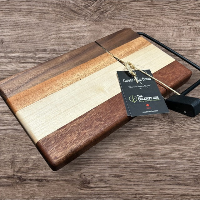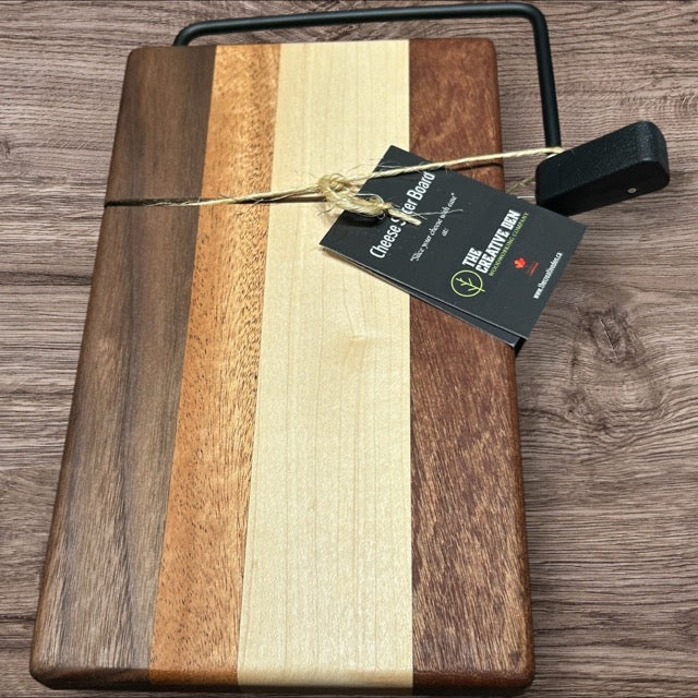 Made from high quality hardware and select hardwoods, these boards will stand the test of time, if properly cared for of course.   Which is why, each board comes with an extra cutting wire and a tin of Board Butter so you can keep your board in tip-top condition!