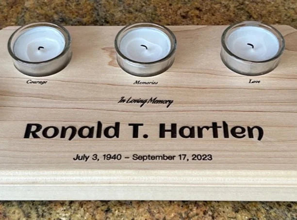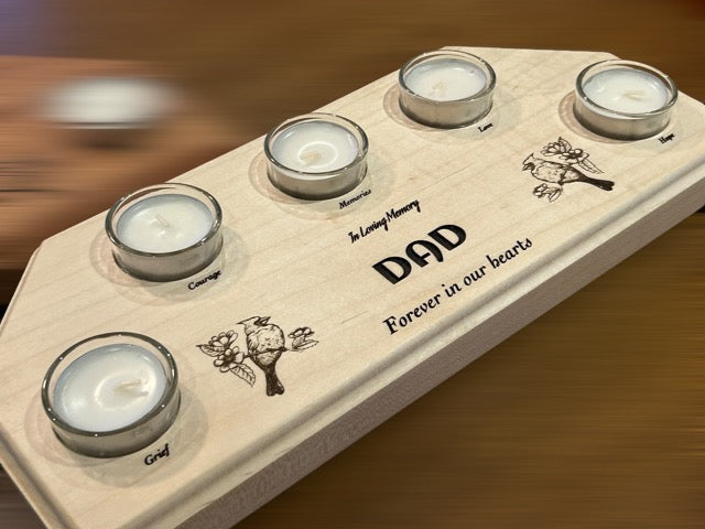 Custom engrave this tribute to your loved one. Includes Memorial Line, Name and Date. However, you may choose to engrave a comforting scripture, poem, a favourite flower or animal instead. Make this board special and unique to you. Engraving can be omitted and the board can be left blank. The choice is yours!